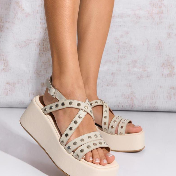 Sandalias de cuero, base forrada de 6,5 cm con suela de TR